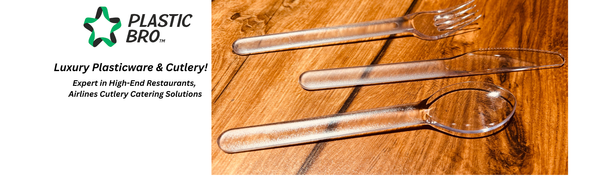 Supplying top-notch BPA-free plasticware and deluxe cutlery for airline services, catering, and retail demands, PLASTIC BRO™ merchandise epitomizes robustness and style.